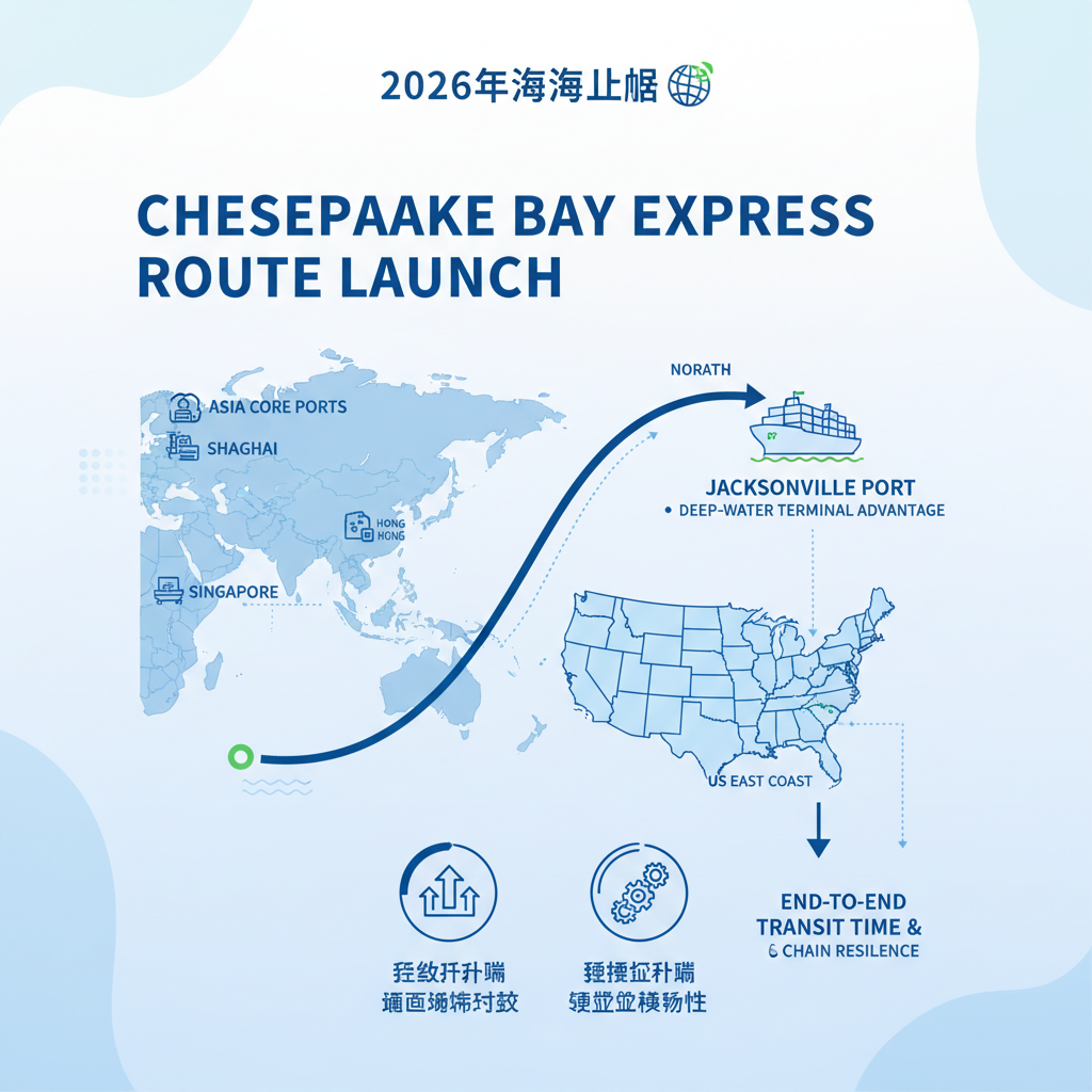 为全面支持切萨皮克湾快线开通,美国本土港口正加速升级。装卸作业将在 Blount Island 现代化的 SSA 杰克逊维尔集装箱码头进行,该设施配备47英尺深的深水航道。同时,JAXPORT 正在推进一项斥资1.2亿美元的净空高度提升工程,预计2026年底完工,将通航净空提升至205英尺,以满足超大型集装箱船的挂靠需求。综合来看,该航线的启动将为全球物流从业者带来前所未有的航线规划灵活性。
